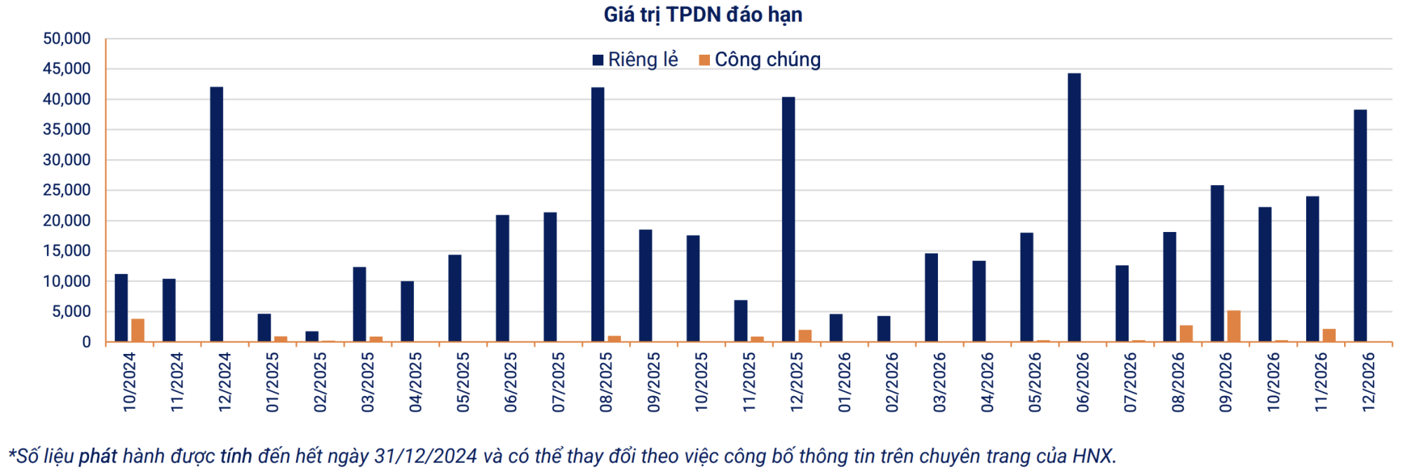Lũy kế cả năm 2024, có 429 đợt phát hành riêng lẻ trị giá 410.544 tỷ đồng và 22 đợt phát hành ra công chúng trị giá 32.914 tỷ đồng.