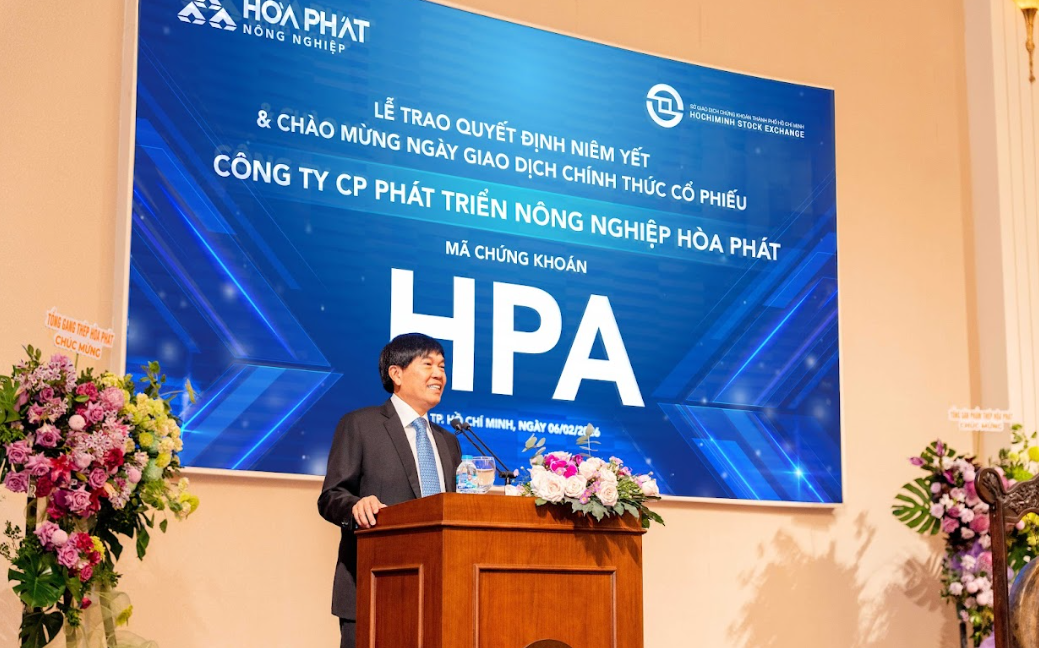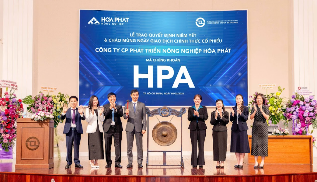 Sáng ngày 06/02/2026, Sở Giao dịch Chứng khoán TP. Hồ Chí Minh (HOSE) đã tổ chức Lễ trao Quyết định niêm yết cho Công ty Cổ phần Phát triển Nông nghiệp Hòa Phát (HPA), chính thức đưa 285.000.000 cổ phiếu HPA vào giao dịch trên sàn HOSE, với giá tham chiếu 41.900 đồng/cổ phiếu trong ngày giao dịch đầu tiên.