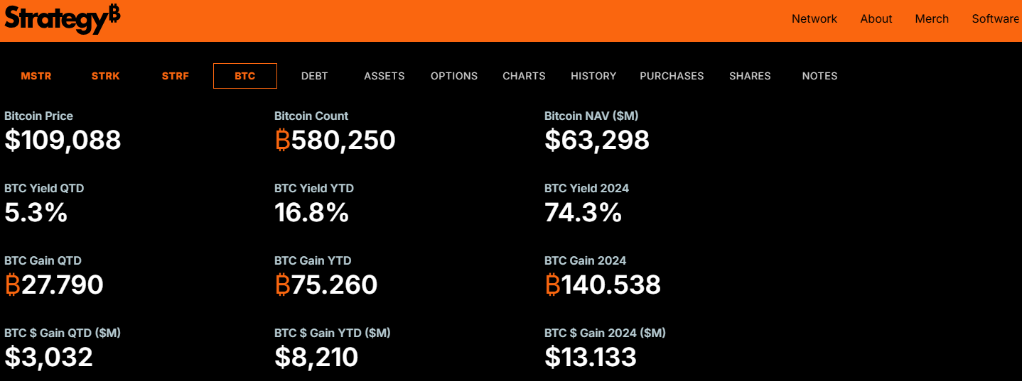 Các chỉ số liên quan tới Bitcoin do Strategy cung cấp