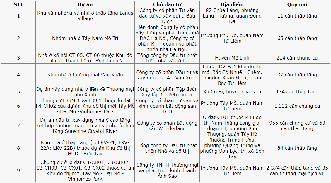 Dự án có quy mô lớn nhất nằm ở khu đô thị mới Tây Mỗ - Đại Mỗ - Vinhomes Park (khu đô thị Vinhomes Smart City) với trên 2.400 căn, do Công ty TNHH Thương mại và phát triển kinh doanh Ánh Sao làm chủ đầu tư. Dự án này có tên thương mại là Lumi Hanoi.