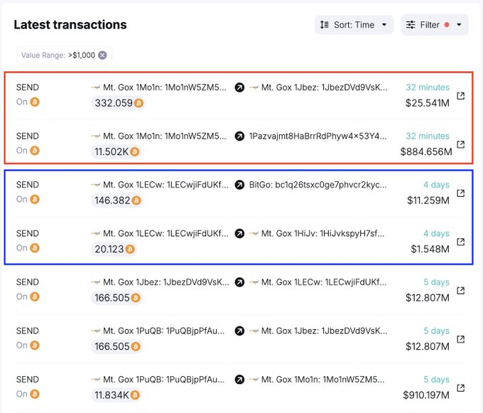 Mt. Gox bất ngờ dịch chuyển 11.833 BTC, trị giá 932 triệu USD, khiến coin thủ lo ngại về một đợt "xả hàng" mạnh sắp tới.