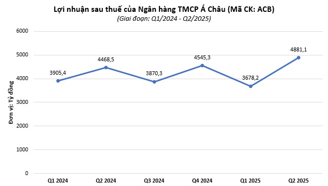 Kết quả, ACB báo lãi sau thuế quý 2/2025 ở mức 4.881,1 tỷ đồng, tăng 9,2% so với cùng kỳ năm trước.