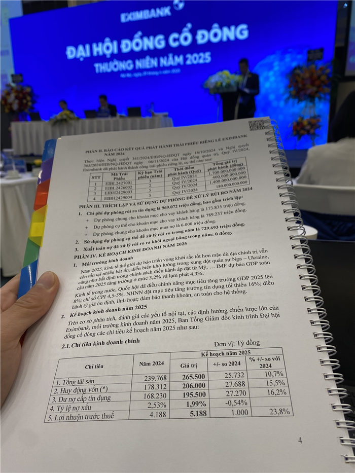 Năm 2025, Eximbank đặt mục tiêu lợi nhuận trước thuế đạt 5.188 tỷ đồng, tăng 23,8% so với năm trước.