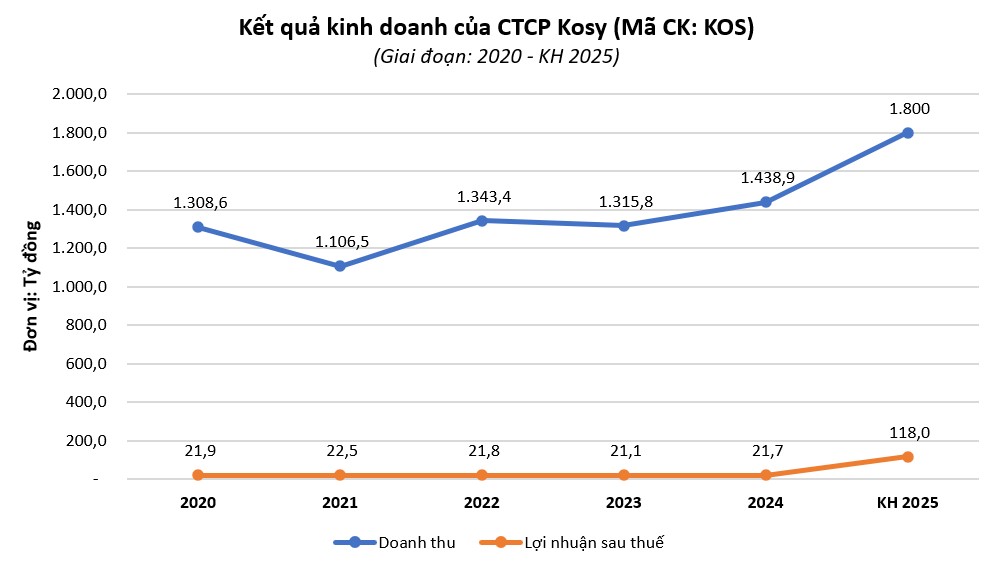 AGM 2025 của Kosy đã thông qua kế hoạch kinh doanh năm nay với tổng doanh thu đạt 1.800 tỷ đồng, tăng 24,2% so với năm trước. Lợi nhuận sau thuế dự kiến đạt 118 tỷ đồng, tăng gấp 5,4 lần so với thực hiện năm 2024.