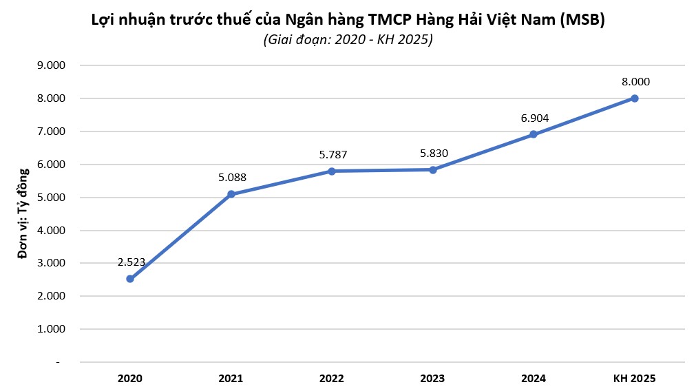 Năm 2025, MSB đặt mục tiêu lãi trước thuế 8.000 tỷ đồng, tăng 16% so với năm trước.