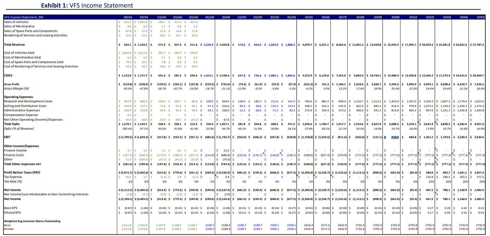 Trong báo cáo cập nhật vào trung tuần tháng 2/2025, Cantor Fitzgerald - một trong những 'tay to' ở Black Spade, SPAC đưa VinFast lên sàn chứng khoán Mỹ - dự báo VinFast có thể hòa vốn EBIT vào năm 2030