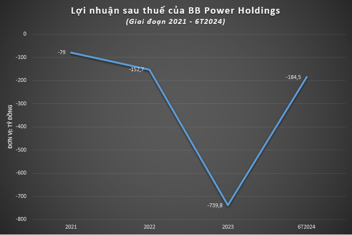 Con số trên đã giảm đáng kể so với mức lỗ 376,5 tỷ đồng cùng kỳ năm ngoái. Nhưng nên nhớ rằng, doanh nghiệp này đã có ít nhất 3 năm báo lỗ, với lỗ lũy kế giai đoạn 2021-2023 lên tới 971,7 tỷ đồng. Riêng năm 2023, BB Power Holdings báo lỗ sau thuế 739,8 tỷ đồng.