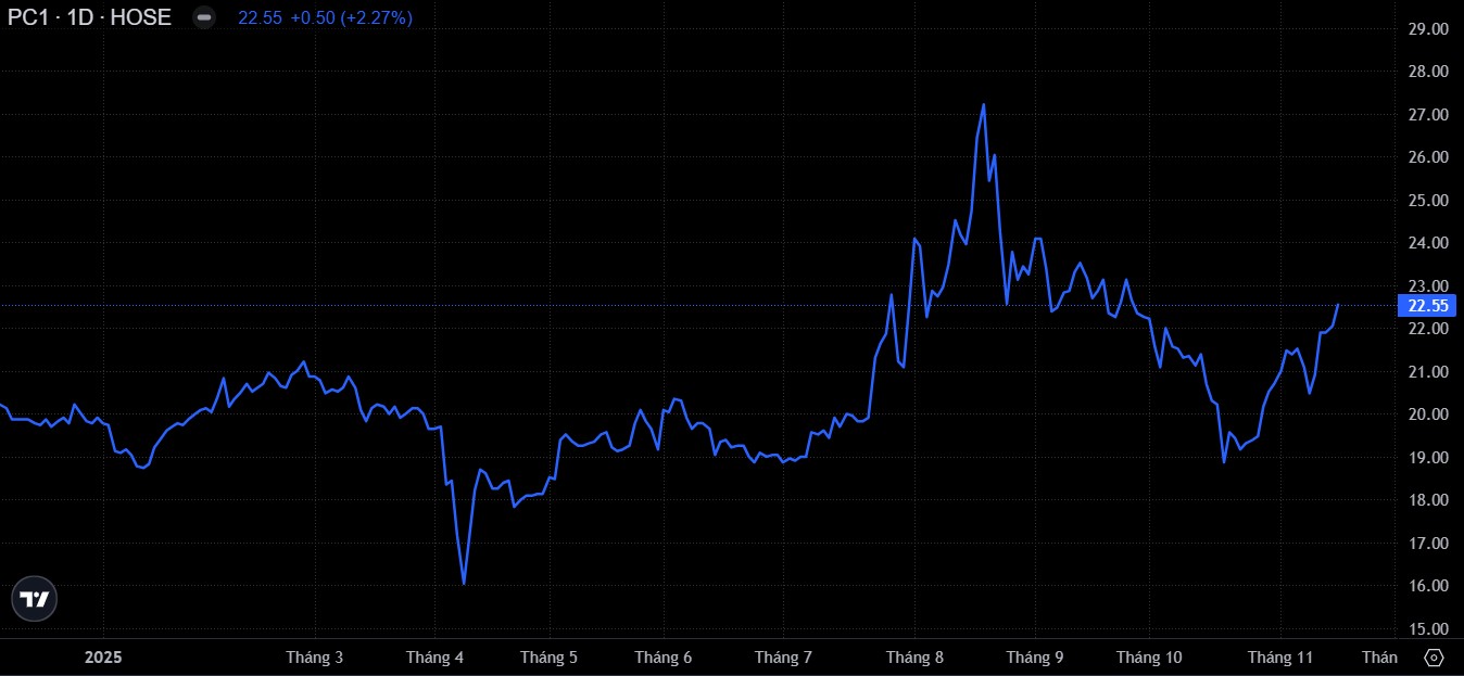 Diễn biến giá cổ phiếu PC1 trên sàn chứng khoán