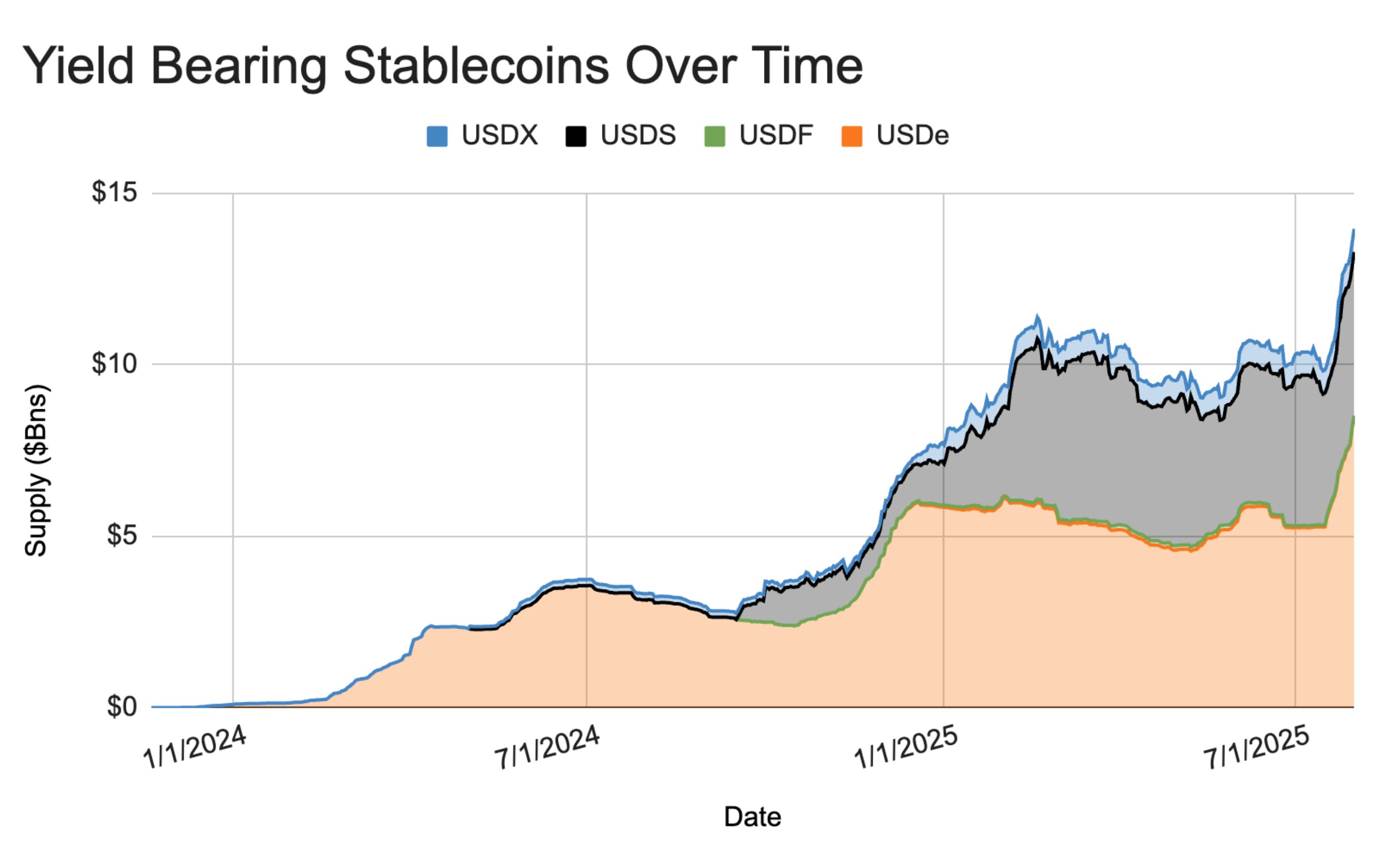 Bất chấp lệnh cấm từ đạo luật GENIUS, nguồn cung stablecoin sinh lợi vẫn vọt tăng (Nguồn: Anthony Yim)
