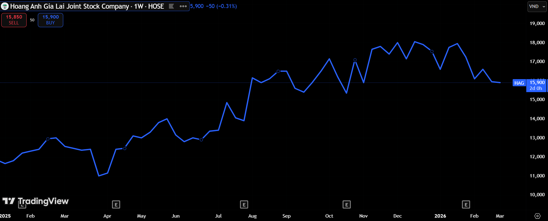 Diễn biến giá cổ phiếu HAG trên thị trường (Nguồn: Trading View)