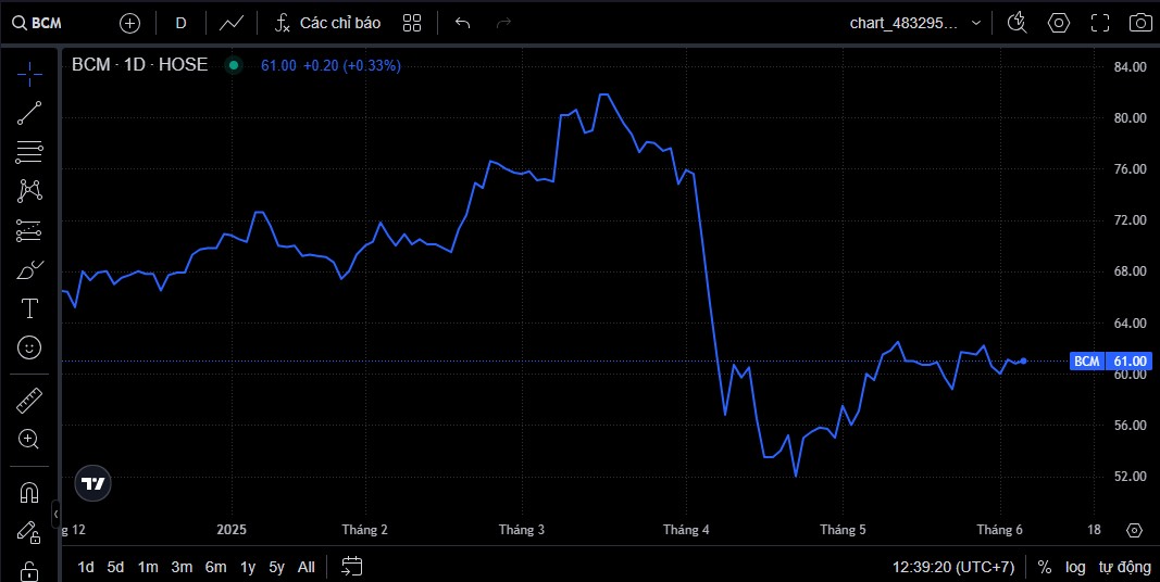 Diễn biến giá cổ phiếu BCM trên sàn chứng khoán