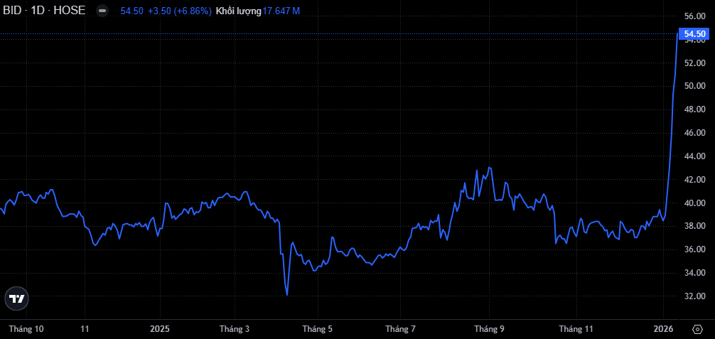 Đà tăng của BID diễn ra đồng pha với hai cổ phiếu ngân hàng quốc doanh khác là VCB và CTG, trong bối cảnh thị trường kỳ vọng Nghị quyết 79-NQ/TW sẽ mở ra cơ chế đột phá, giúp các nhà băng này củng cố nền tảng vốn và tiến gần hơn tới mục tiêu gia nhập nhóm 100 ngân hàng lớn nhất châu Á.