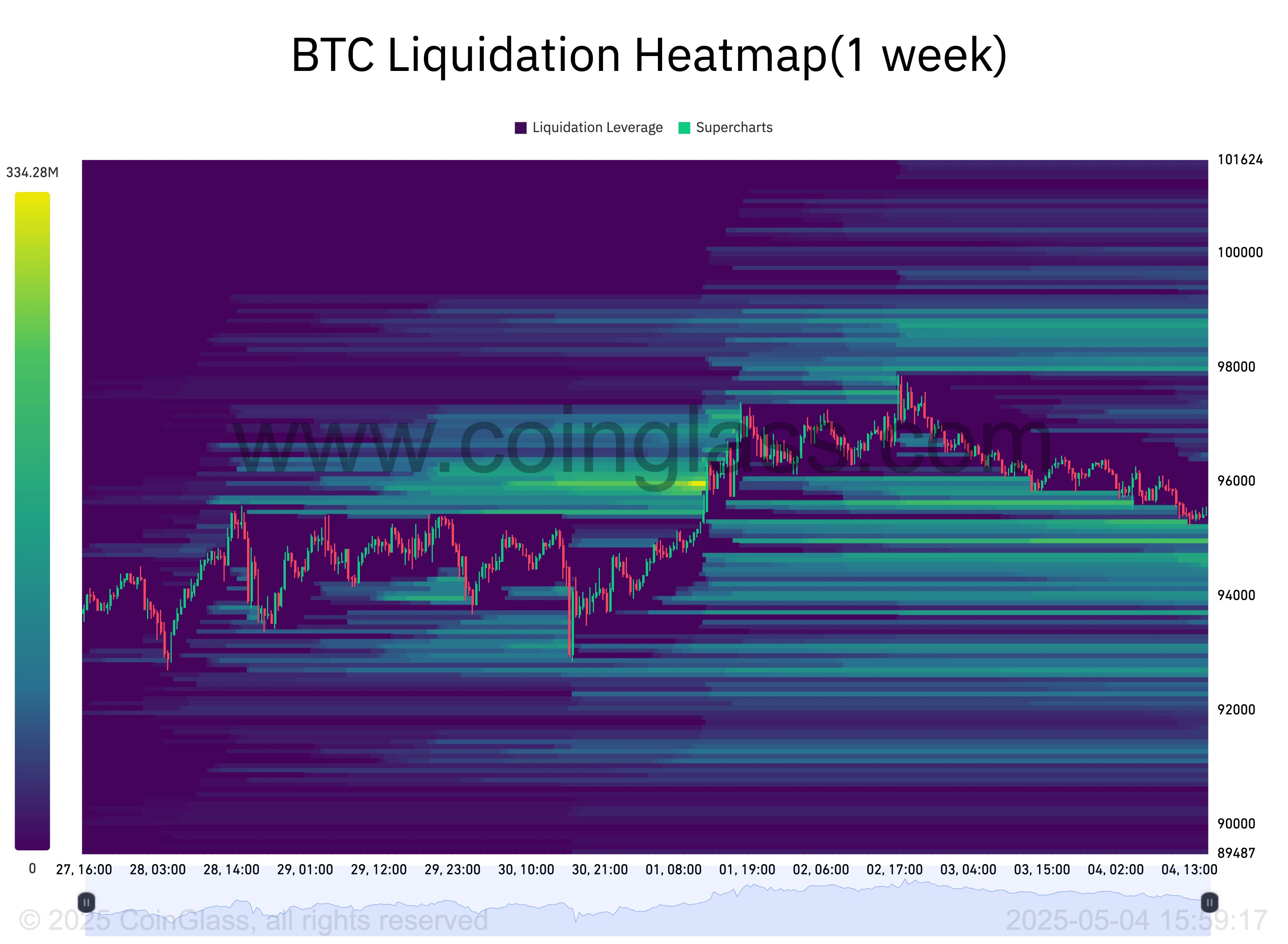 Bản đồ nhiệt thanh lý BTC trong 1 tuần (Nguồn: CoinGlass)