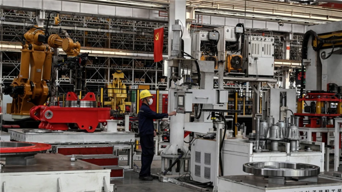 Công nhân làm việc tại một máy lắp ráp ở Bắc Kinh, Trung Quốc
