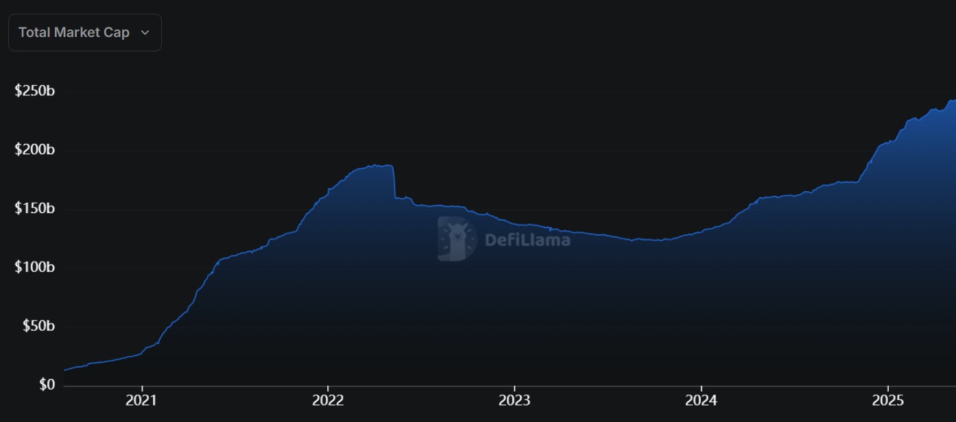 Stablecoin trên toàn cầu đã tăng trưởng đáng kể trong năm năm qua (Nguồn: DeFiLlama)