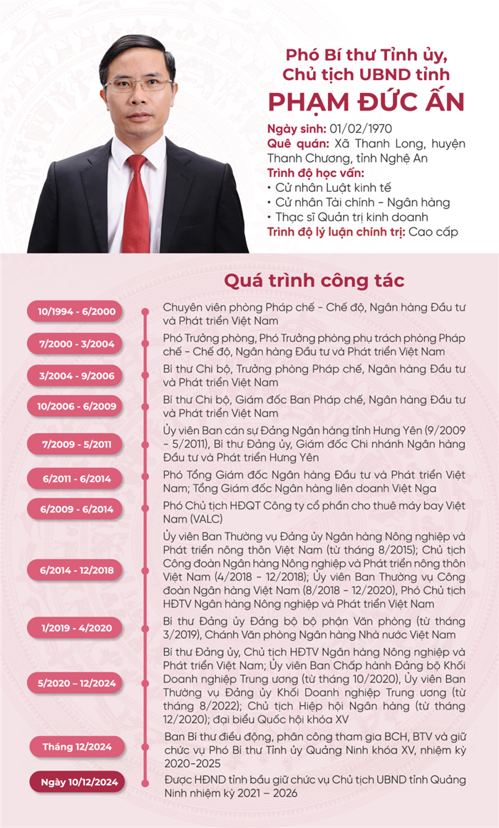 Quá trình công tác của tân Chủ tịch UBND tỉnh Quảng Ninh Phạm Đức Ấn (Nguồn: VGP)