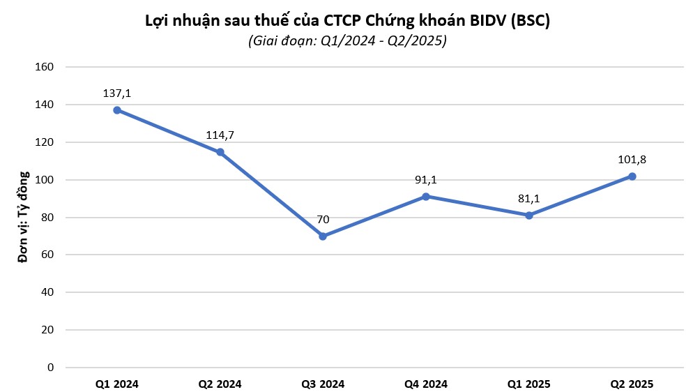 Lũy kế 6 tháng đầu năm 2025, doanh thu hoạt động của BSC đạt 843,6 tỷ đồng, tăng 9% so với cùng kỳ; lợi nhuận trước thuế đạt 227,2 tỷ đồng. Khấu trừ chi phí, BSC báo lãi sau thuế 200 tỷ đồng.