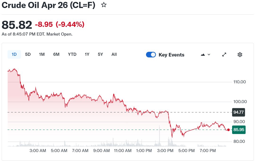 Trước đó, giá dầu WTI từng tăng vọt lên 119 USD/thùng, lần đầu vượt mốc 100 USD kể từ năm 2022. Dầu Brent cũng giảm xuống quanh 84 USD/thùng sau các thông tin mới về tình hình xung đột.