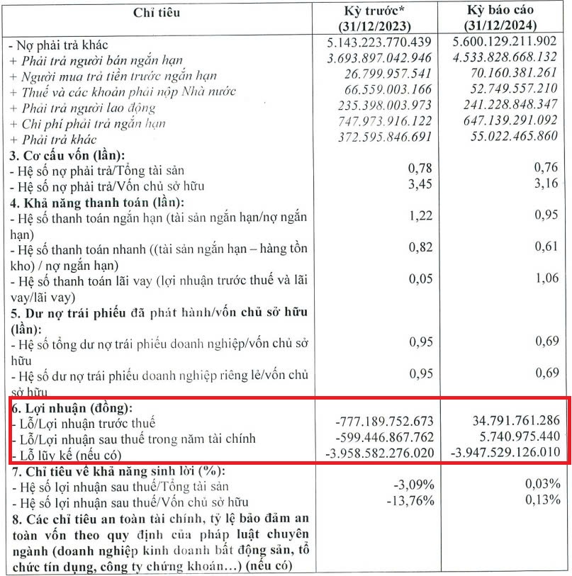 Dù lần đầu tiên "thoát lỗ" trong một năm tài chính, nhưng tính đến cuối 2024, công ty vẫn còn khoản lỗ lũy kế 3.947,5 tỷ đồng.