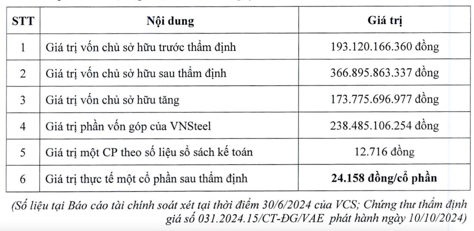 Hồi cuối tháng 11/2024, VNSteel công bố nghị quyết thông qua việc thoái toàn bộ 9,87 triệu cổ phần, tương đương 65% vốn của VCA. Thời gian dự kiến thực hiện bắt đầu từ tháng 11 và dự kiến hoàn tất thoái vốn trong năm nay tới quý 1/2025.