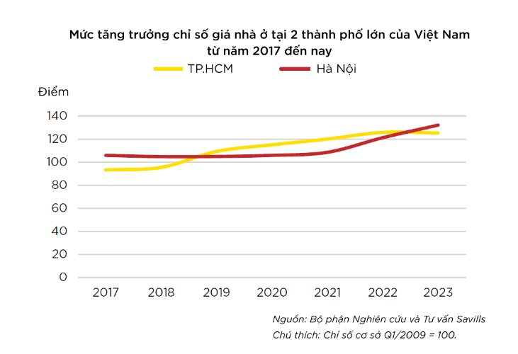 Ghi nhận của Bộ phận Nghiên cứu Savills Việt Nam, tại các đô thị lớn như TP.HCM và Hà Nội, thị trường nhà ở hiện nay thiếu hụt nguồn cung giá hợp lý khi thị phần phân khúc này đã giảm từ 60% năm 2016 xuống chỉ còn 35% năm 2024, căn hộ sơ cấp dưới 2 tỷ đồng biến mất hoàn toàn.