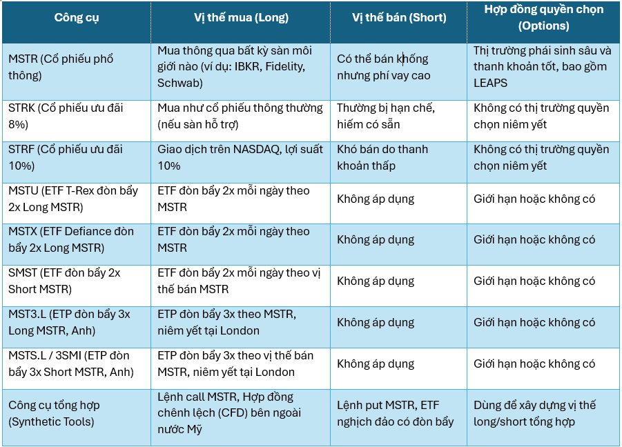 Các công cụ tài chính xoay quanh hệ sinh thái Strategy (Nguồn: Tiến sĩ Michael Tabone)