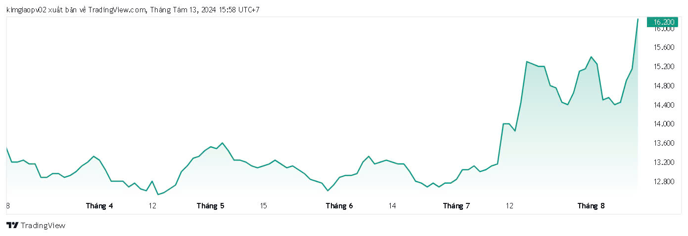 Kết phiên giao dịch ngày 13/8, NAB "tím trần" mức 16.200 đồng/cp, tăng 6,9% so với tham chiếu. Cổ phiếu ngân hàng này đã 21,9% kể từ khi được niêm yết trên sàn HOSE đến nay.