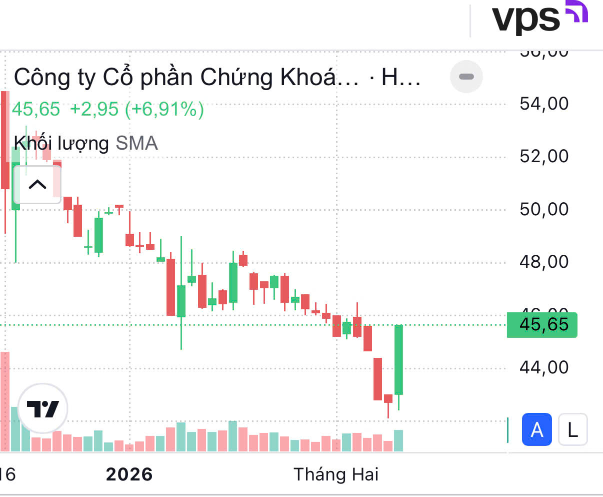 Theo đó, kết phiên 10/2, VCK tăng kịch biên độ, đóng cửa ở mức giá trần 45.650 đồng/cp. Lệnh mua tập trung mạnh ở cuối phiên cho thấy lực cầu gom hàng quyết liệt. Khối ngoại đóng góp sức mua đáng kể, với giá trị gom ròng hơn 44 tỷ đồng.