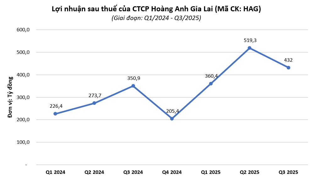 Lợi nhuận trước thuế đạt 1.291 tỷ đồng, tăng 54% so với cùng kỳ năm trước; lợi nhuận sau thuế đạt 1.312 tỷ đồng, tương đương 87% kế hoạch năm. Trước đó, Chủ tịch Đoàn Nguyên Đức (Bầu Đức) cho biết HAG có thể ghi nhận khoản thu nhập bất thường hơn 1.000 tỷ đồng, qua đó nâng lợi nhuận cả năm lên khoảng 2.500 tỷ đồng.