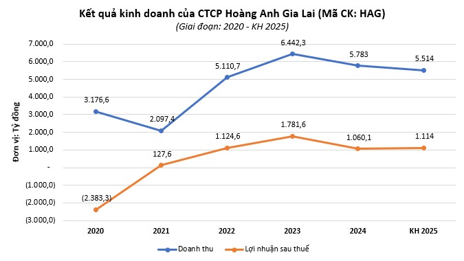 Năm nay, ban lãnh đạo HAG đề xuất kế hoạch kinh doanh với tổng doanh thu đạt 5.514 tỷ đồng, giảm gần 5% so với năm trước. Lợi nhuận sau thuế dự kiến đạt 1.114 tỷ đồng, tăng 5% so với năm 2024.