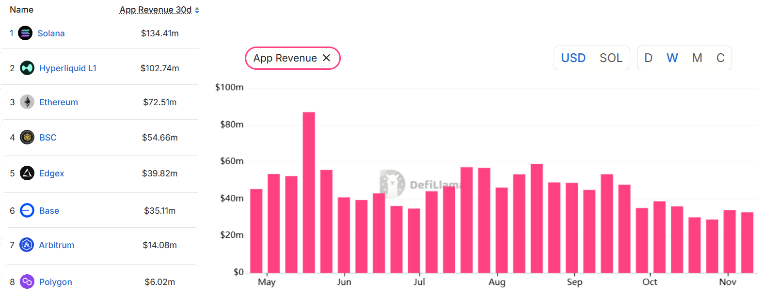 Trong 30 ngày qua, hoạt động on-chain của Solana tăng mạnh: số địa chỉ hoạt động tăng 10%, giao dịch tăng 8%, trong khi Ethereum lại giảm. Solana hiện dẫn đầu doanh thu từ DApp, vượt xa các blockchain khác – minh chứng cho khả năng tạo lợi nhuận thực tế từ hệ sinh thái.