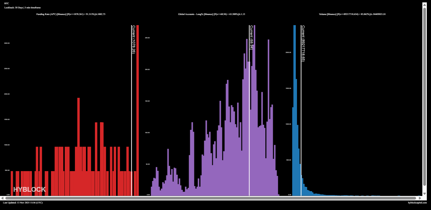 Dù vậy, dữ liệu của Hyblock Capital lại cho thấy tâm lý trên thị trường vẫn thiên về bên mua, với 68,9% lệnh trên Binance đang là vị thế long. Điều này phản ánh niềm tin dai dẳng của nhiều trader rằng BTC sẽ giữ được mốc 100.000 USD.