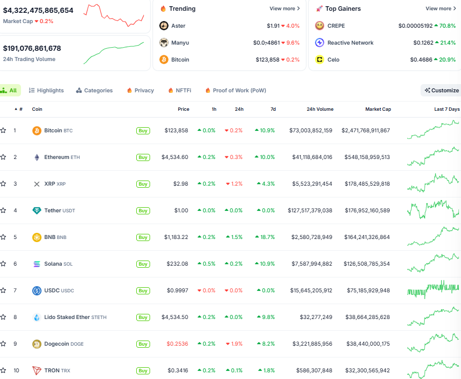 Thị trường crypto ngày 6/10 (Nguồn: CoinGecko)
