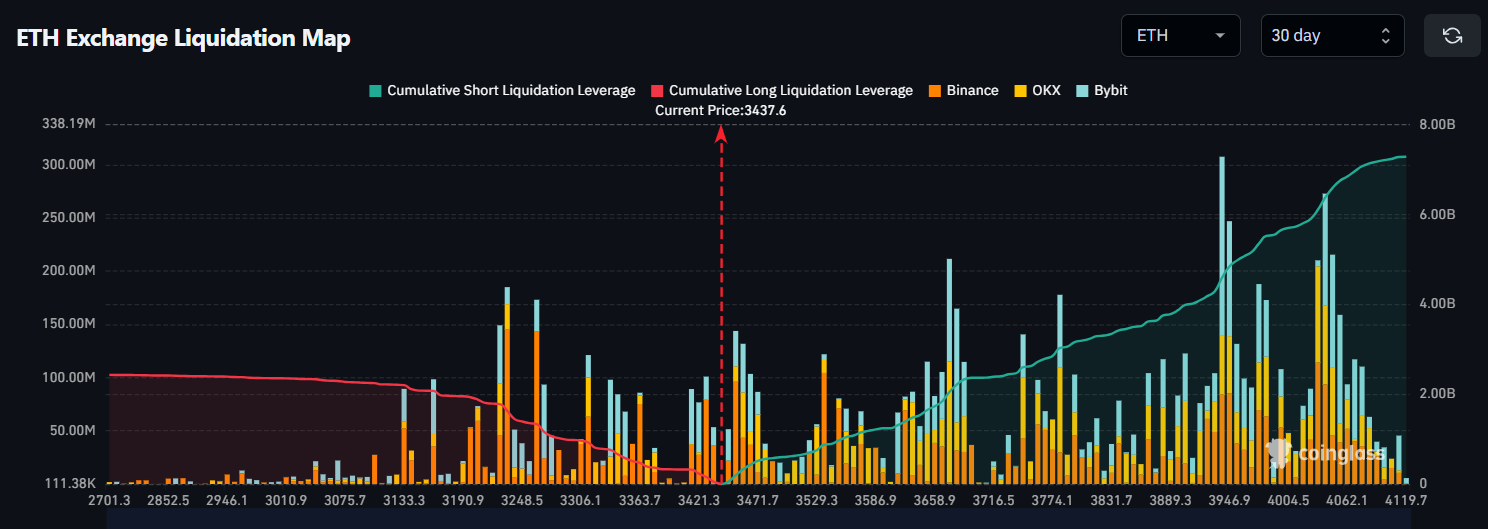 Bản đồ thanh lý ETH theo sàn giao dịch (Nguồn: CoinGlass)