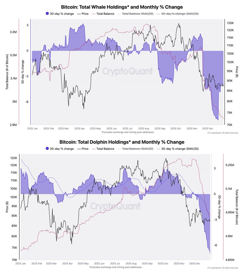 Thống kê của CryptoQuant cho thấy cá voi vẫn đang phân phối Bitcoin.