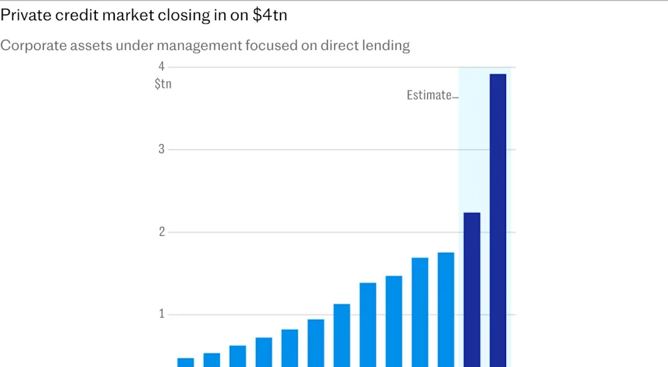 Thị trường tín dụng tư nhân tiến sát mốc 4 nghìn tỷ USD (Đồ họa: Telegraph)