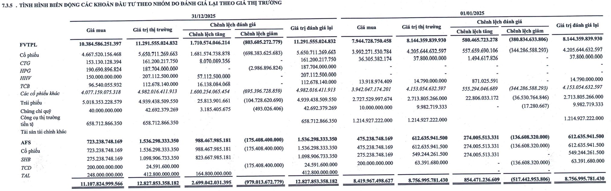 Danh mục tự doanh của SHS tại thời điểm cuối năm 2025