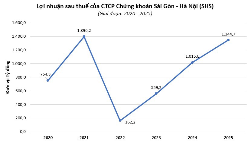 Theo đó, năm 2025, SHS ghi nhận kết quả kinh doanh tăng trưởng ấn tượng với khoản lãi ròng 1.344,7 tỷ đồng, tăng 32,4% so với năm trước, đồng thời cũng là mức lợi nhuận cao thứ hai trong 18 năm hoạt động.