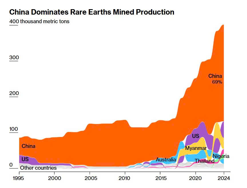 Thế thống lĩnh thị trường đất hiếm của Trung Quốc khiến Mỹ 'sốt ruột' (Nguồn: Bloomberg)