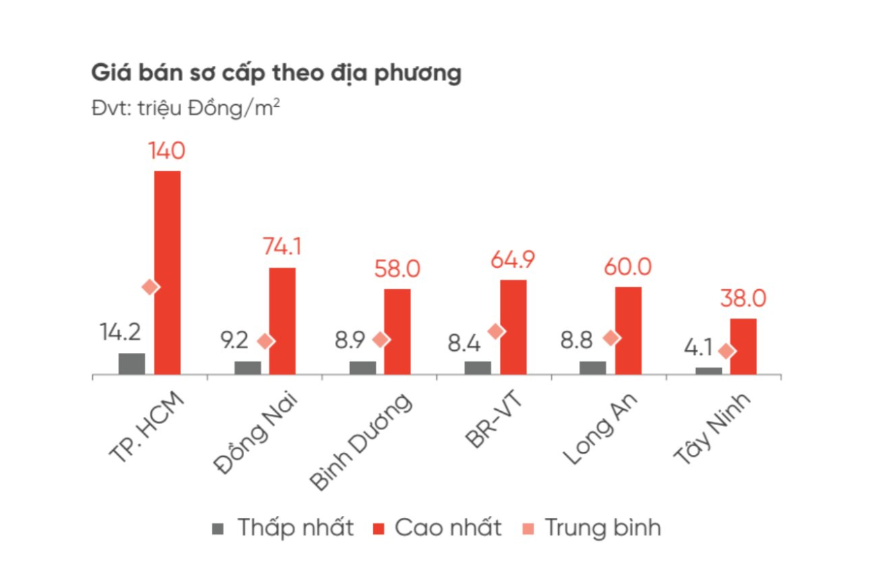 Theo đơn vị này, phần lớn giao dịch đất nền phân bổ ở giai đoạn 6 tháng cuối năm và nhóm sản phẩm có mức giá trung bình dưới 50 triệu đồng/m2 tại TP. HCM và dưới 25 triệu đồng/m2 thuộc vùng phụ cận. Các chính sách chiết khấu cho khách hàng giữ chỗ trước ngày mở bán, thanh toán nhanh/thanh toán bằng dòng vốn tự có,... tiếp tục được các chủ đầu tư áp dụng rộng rãi đã kích thích thanh khoản thị trường những ngày cận Tết.
