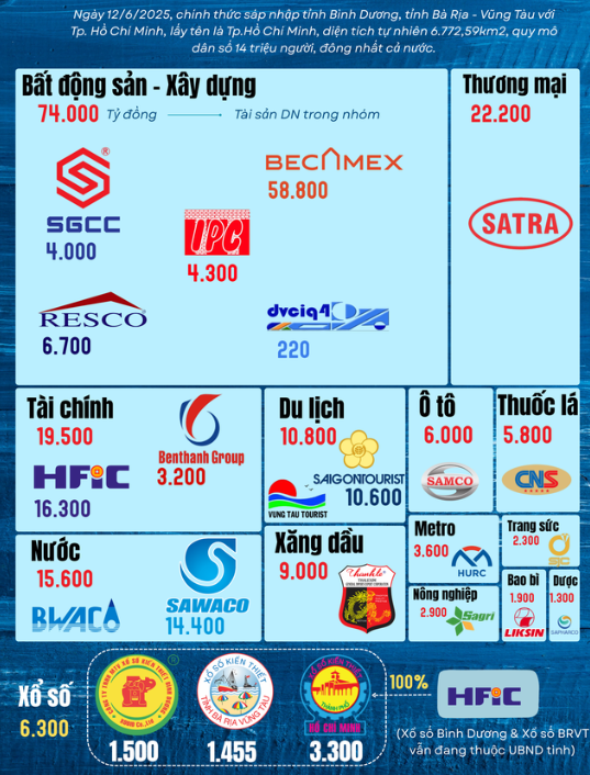 UBND TP. HCM sau sáp nhập nắm trong tay hơn 20 "đầu tàu" kinh tế là các doanh nghiệp lớn đầu ngành trải rộng trên rất nhiều lĩnh vực với tổng tài sản lên tới hơn 180.000 tỷ đồng.