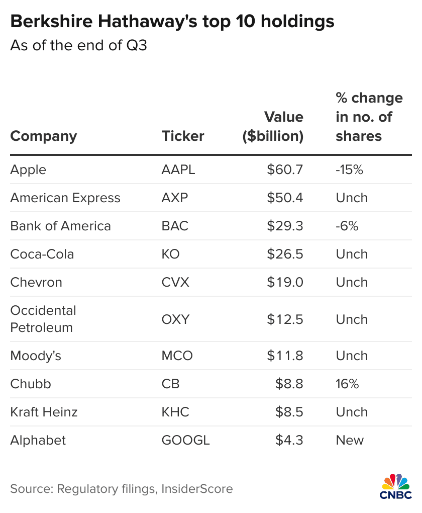 Danh mục đầu tư của Tập đoàn Berkshire Hathaway (Nguồn: CNBC)