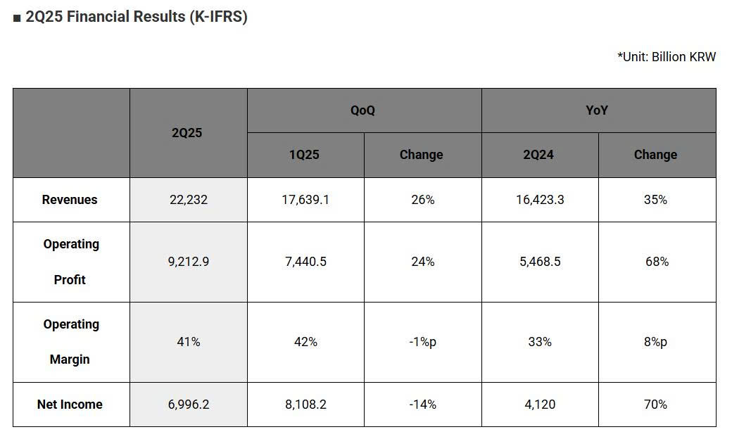 SK Hynix sản xuất chip nhớ dùng trong máy chủ, điện thoại và laptop. Công ty cho biết kết quả kinh doanh quý 2 được thúc đẩy nhờ nhu cầu cao và giá bán tích cực trong nửa đầu năm.