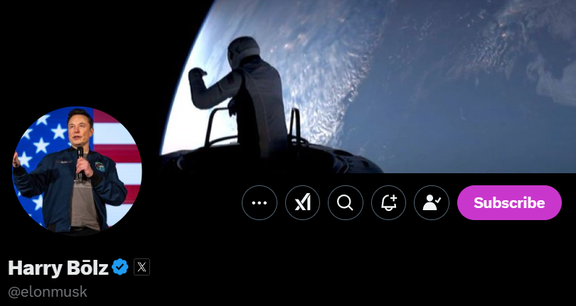 Tài khoản X có tích xanh của Elon Musk đổi tên thành Harry Bolz (Ảnh chụp màn hình)