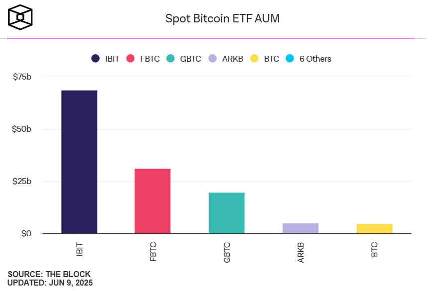 Lượng tài sản IBIT nắm giữ vượt xa các quỹ ETF Bitcoin còn lại (Nguồn: The Block)