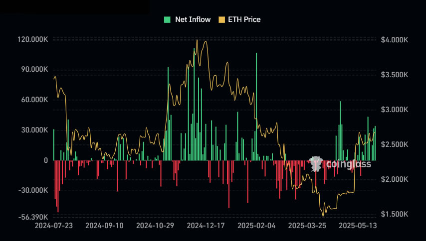 Dòng tiền đổ vào các quỹ ETF ETH (Nguồn: CoinGlass)