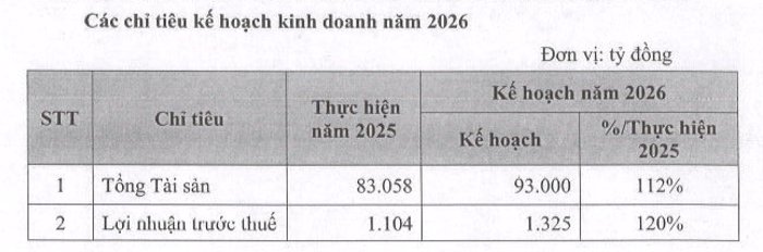 Trong năm 2026, công ty định hướng duy trì chất lượng tín dụng với mục tiêu kiểm soát tỷ lệ nợ xấu dưới 2%, đồng thời mở rộng tập khách hàng ở cả phân khúc bán buôn và bán lẻ.