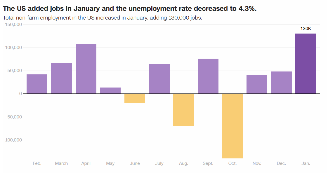 Tăng trưởng việc làm của Mỹ tháng 1/2026 tích cực hơn kỳ vọng – điều thúc đẩy Fed kéo dài chu kỳ ổn định lãi suất (Nguồn: CNN)