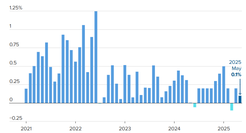 Giá tiêu dùng tại Mỹ trong tháng 5 tăng thấp hơn dự kiến, khi các mức thuế quan do Tổng thống Donald Trump áp đặt vẫn chưa tạo ra ảnh hưởng đáng kể đến lạm phát, theo báo cáo từ Cục Thống kê Lao động vừa công bố.