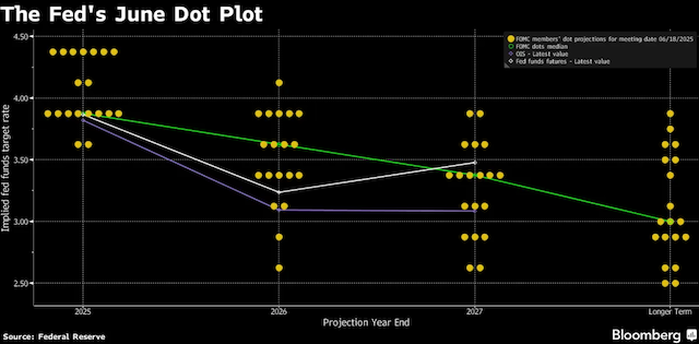 Biểu đồ dot-plot cũng cho thấy sự phân hóa rõ rệt kỳ vọng về mức lãi suất mục tiêu giữa các thành viên FOMC.